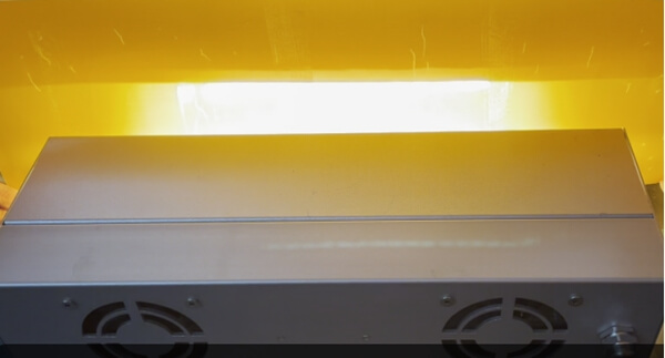 在碳纖維預浸料的加工過程中,有時需要對特定區域進行軟化,以便進行形狀變化或者粘合等加工工藝。熱風槍熱流密度較低,而且對環境不友好,熱氣會令工作環境溫度升高,廠內制冷能冷能耗浪費,這時可以使用線型聚焦加熱技術對碳纖維預浸料進行均勻加熱軟化,其不產生熱對流,而且功率只有熱風槍的50%以下,熱流密度高達390KW/m2,利用線型加熱器置于需要軟化的料帶前段(滾輪前端)區域,施加高熱流密度,可以使該區域的碳纖維預浸料升溫并軟化,然后通過滾輪壓平成型,整個速度高達80mm/s,滿足了批量生產需求 。
